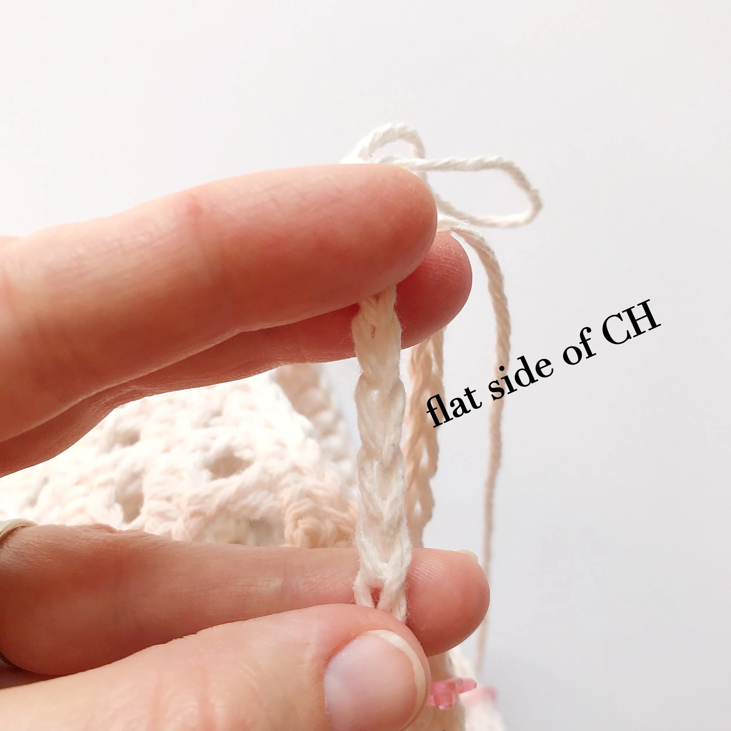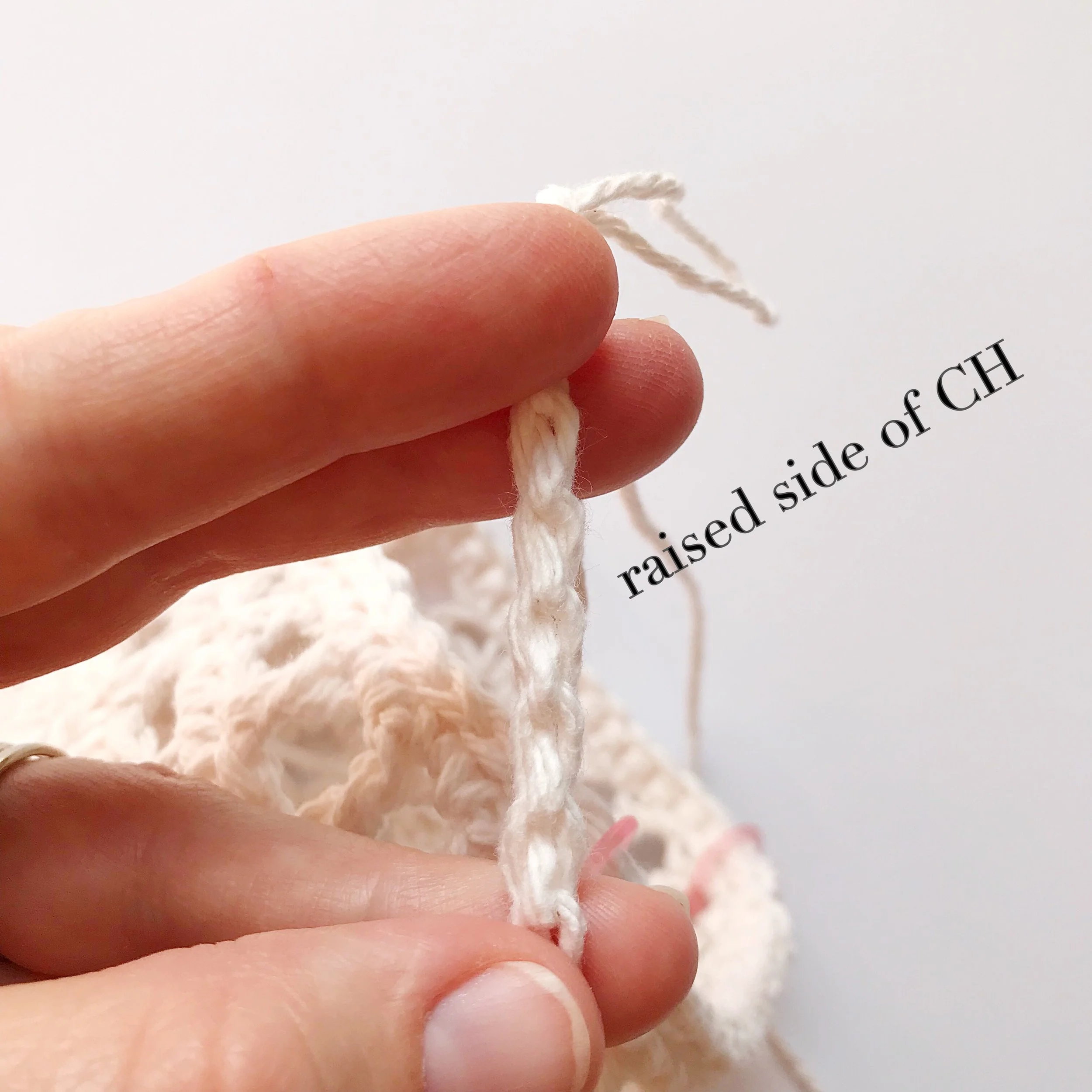 Note: Since you will be working on the WS of your cowl throughout, join with raised side of CH facing you, rather than flat side. (see photos below for the difference between the raised and flat side of CH)