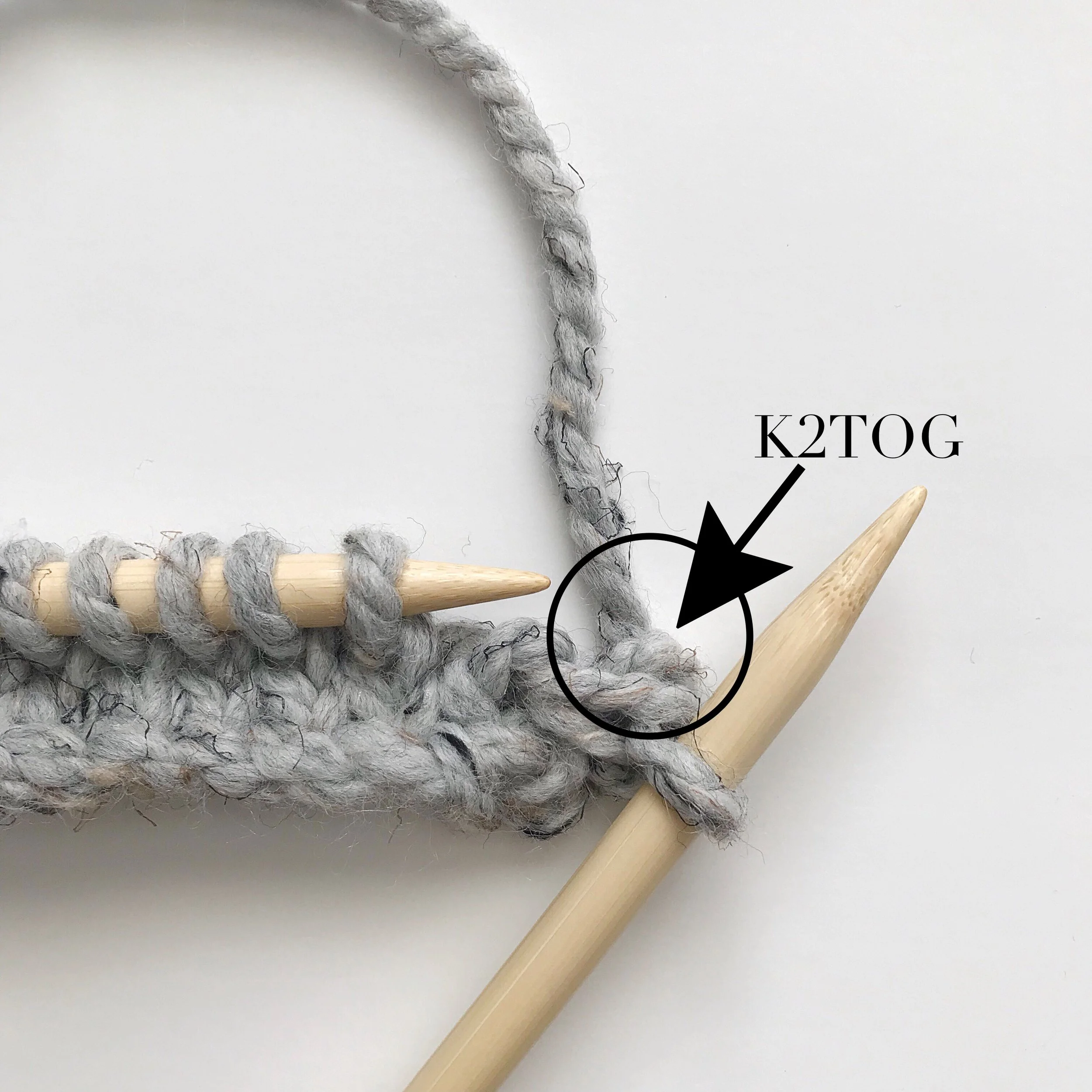 K2TOG – knit 2 together