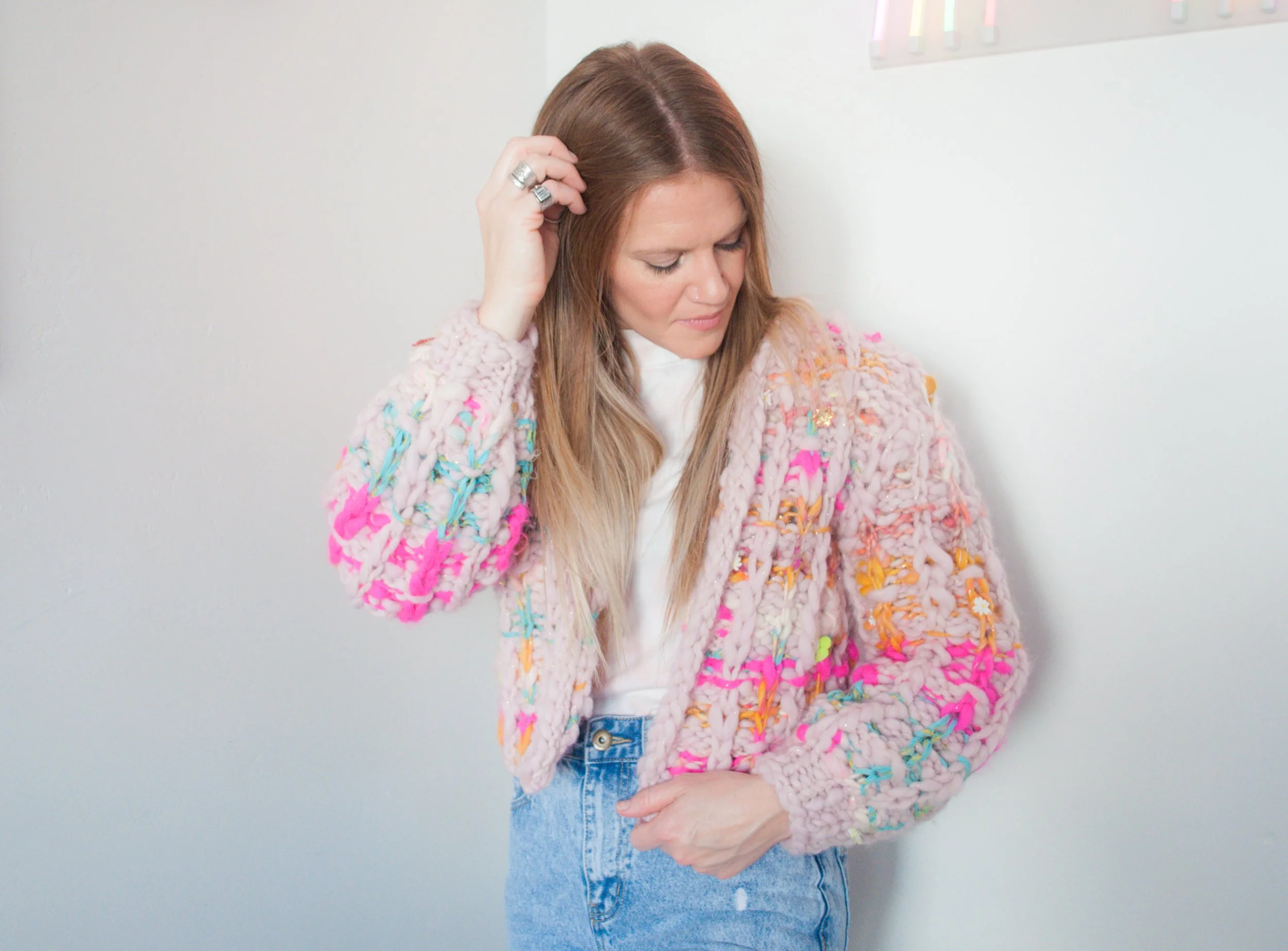Y’all, isn't the idea of a plaid pattern with this beautiful art yarn absolutely mind-blowing?! I mean, it is just so cool and so unique! I am all about unique and this cardigan was calling my name from the start! My dilemma? Trying to figure out how I wanted my contrast colors to go. I knew that with the combo of this yarn and this design, you couldn't really go wrong. But I wanted to figure out just the right pattern for my sweater.