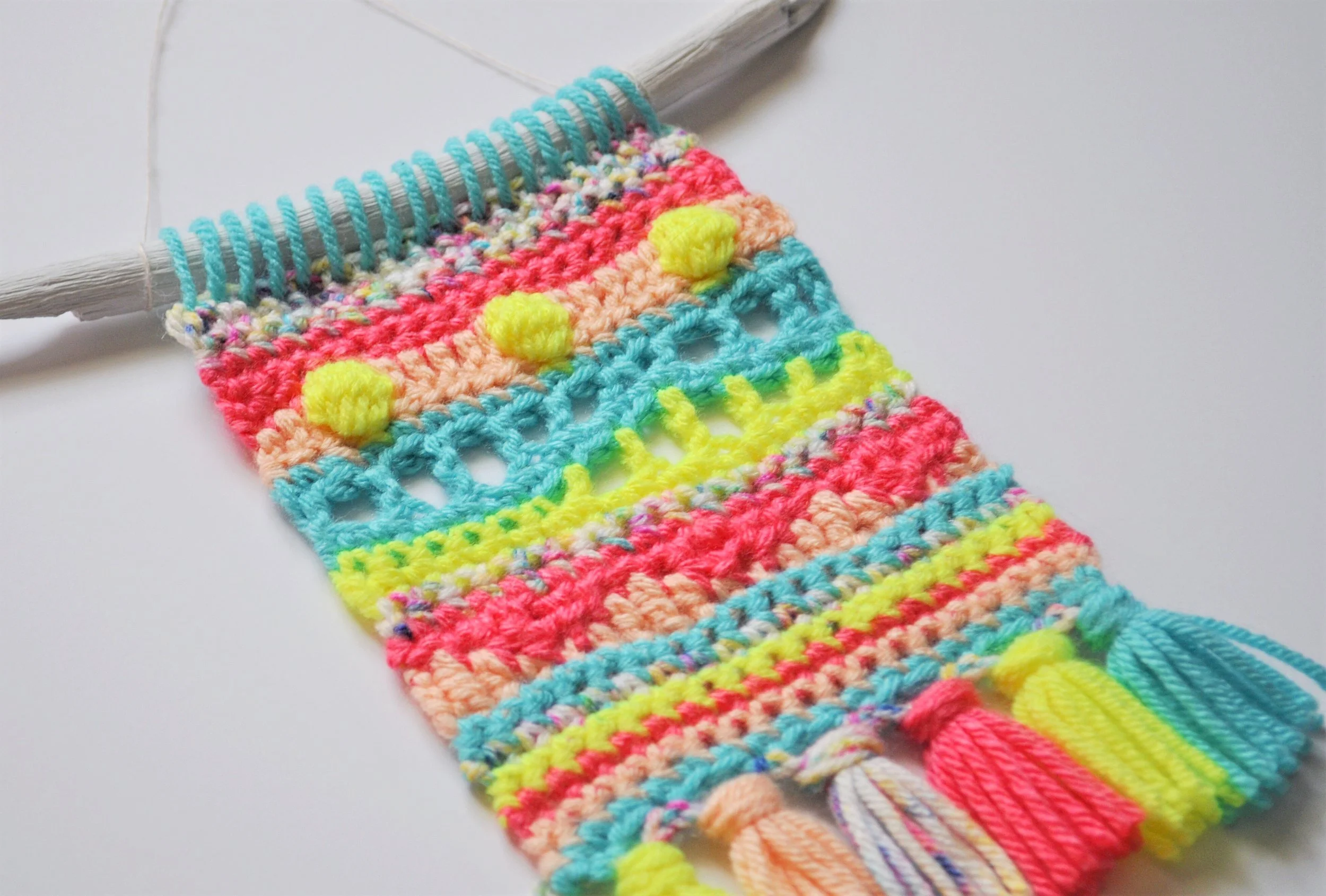 If you are like me, you love to use up every last bit of yarn! This neon waves mini crochet wall hanging pattern is perfect for that! It will adorn your wall with style and cuteness all the while using up your yarn stash!
