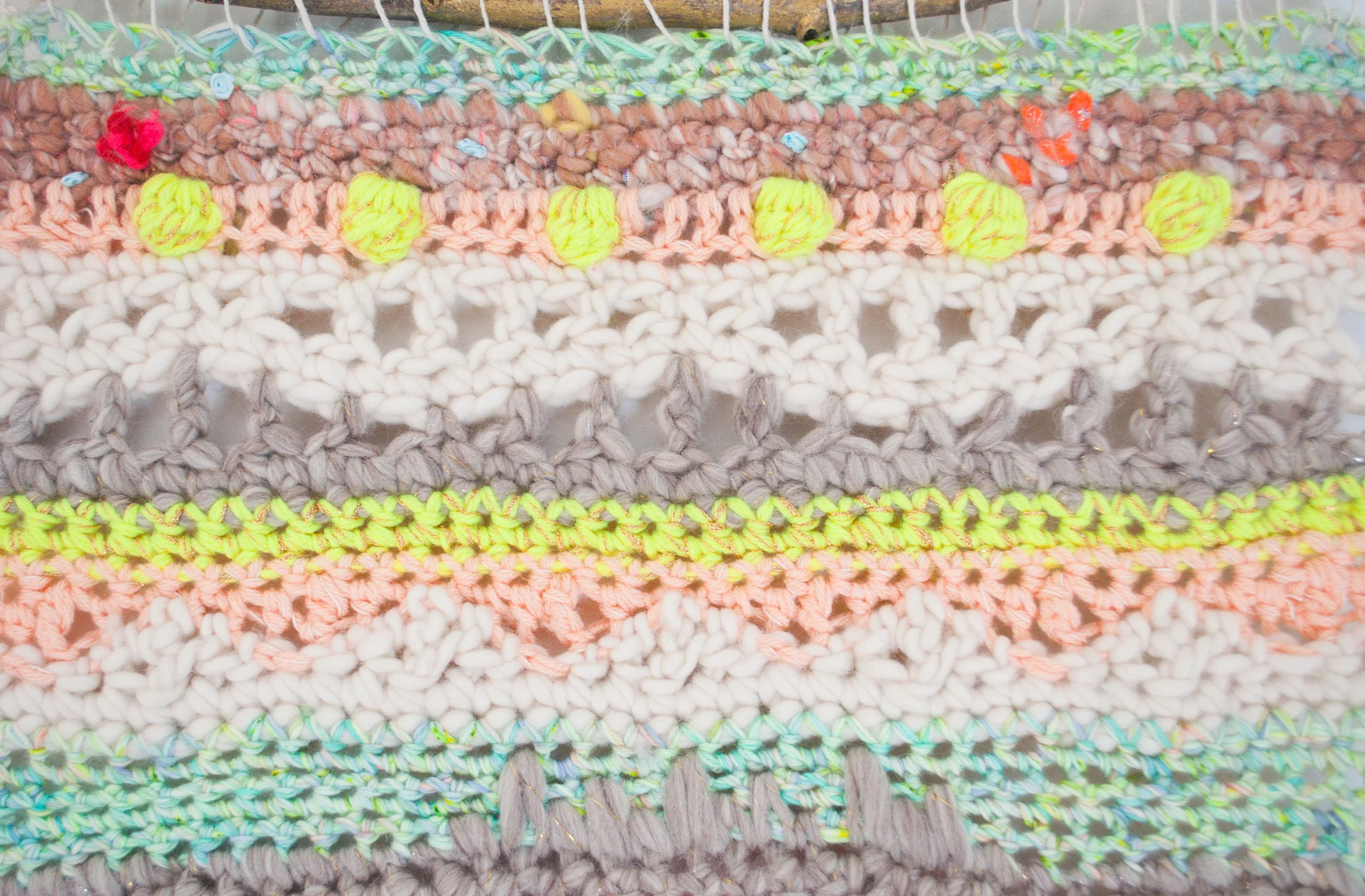 Time for another scrap yarn win! :) This go around, I'm using super bulky scraps as well as multiple strands of aran + DK weights held together to bring you this super cute and modern crochet wall hanging pattern!