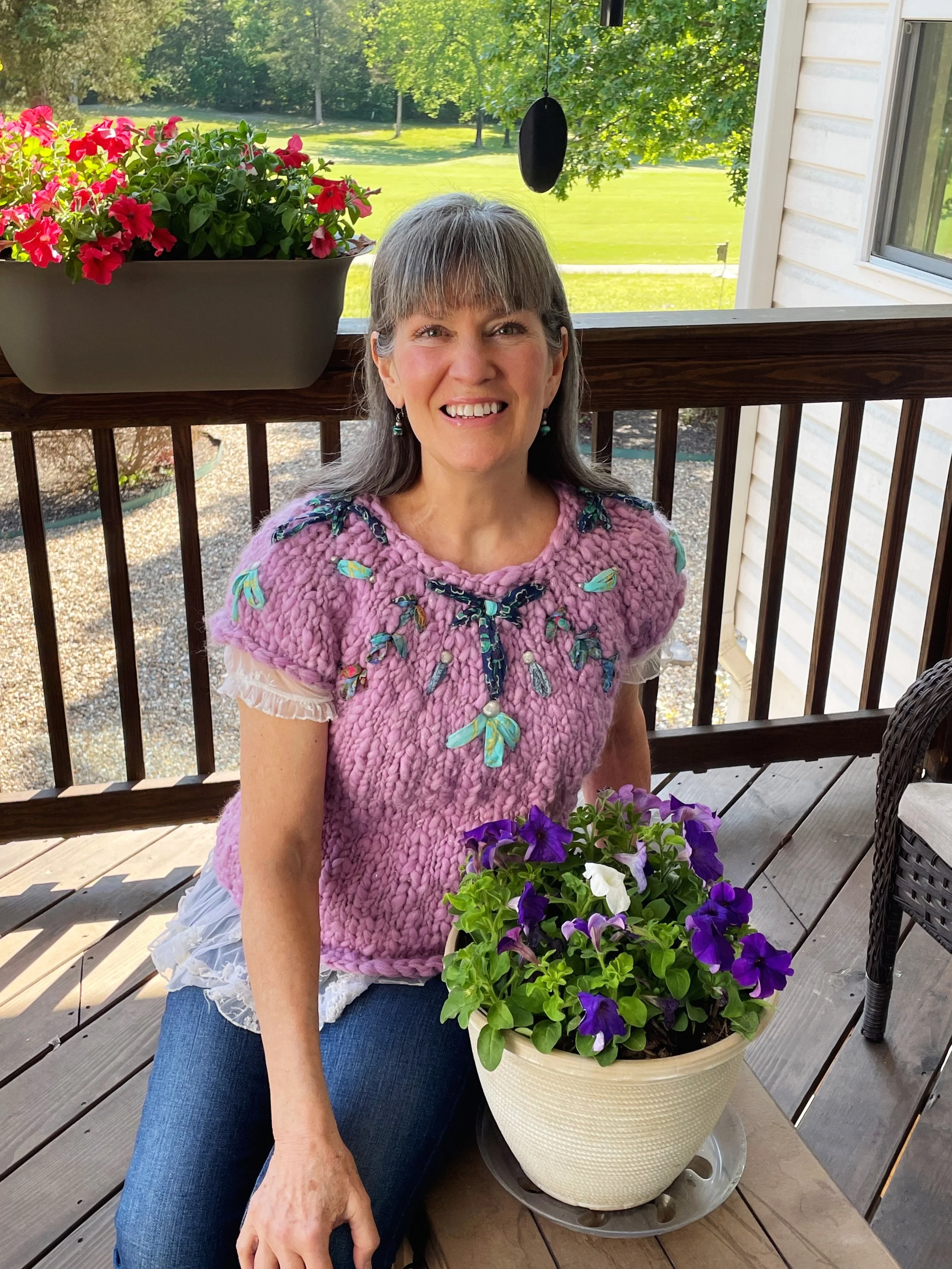 As I mentioned, this knit along was extra special because I got to choose two kits! Wooohooooo!!! I just knew the Embroidered Kaleidoscope would be the perfect Mother's Day gift for my mom and I couldn't wait to surprise her with it! :) I was a little nervous that I wouldn't finish in time. But, thankfully it all worked out perfectly! Find my YouTube video about my Mother's Day projects (including the Embroidered Kaleidoscope) [here]!