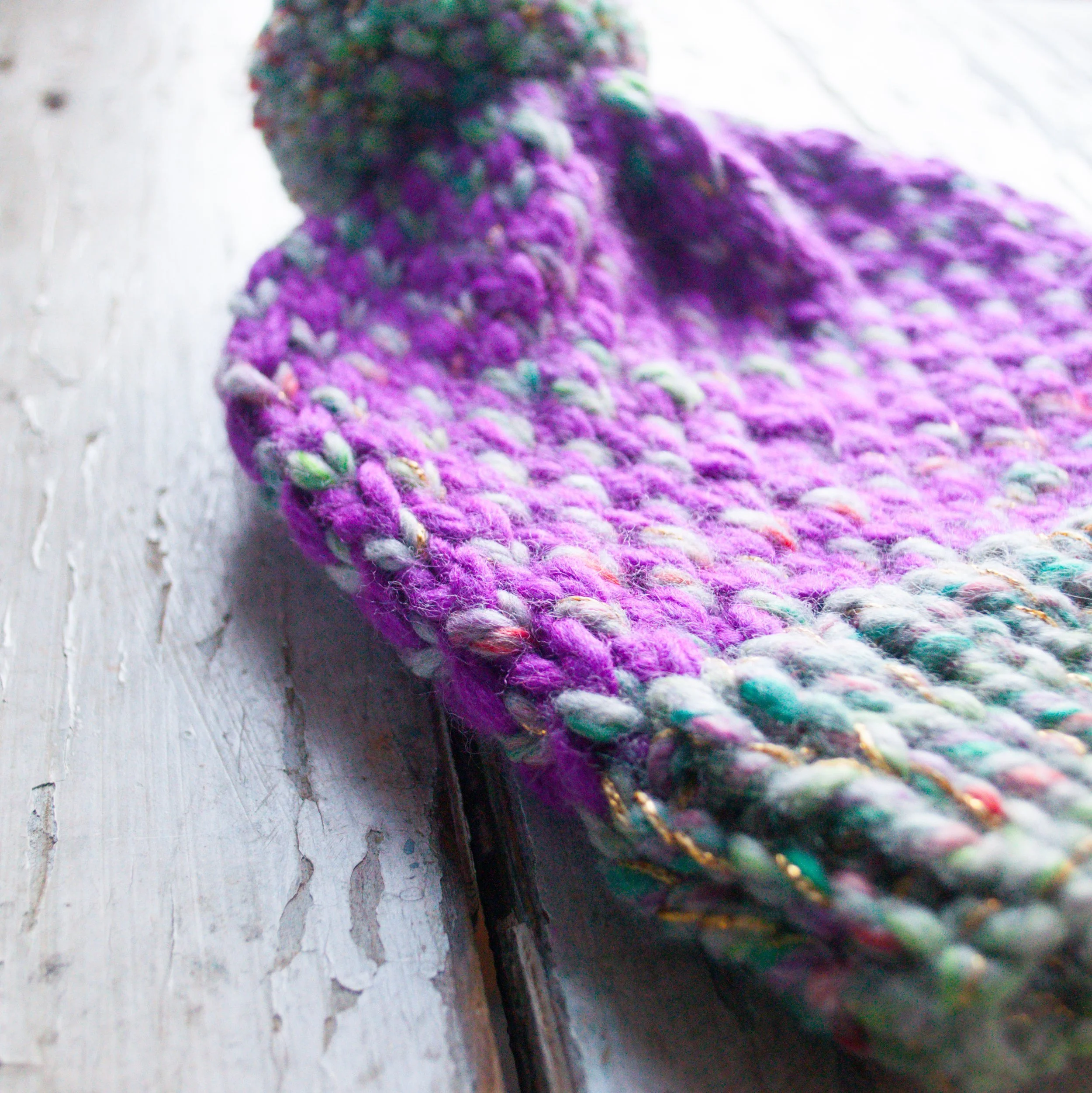 Color A consists of holding your super bulky yarn and sparkle yarn together as one color throughout the beanie.