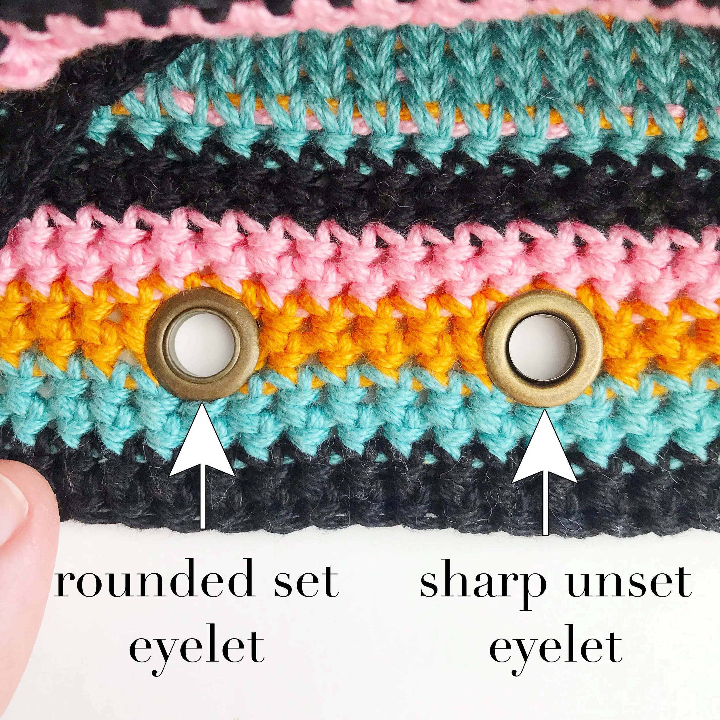 place front of eyelet into back of eyelet