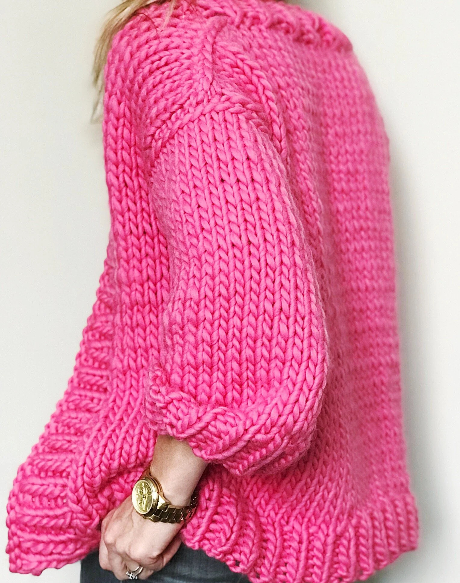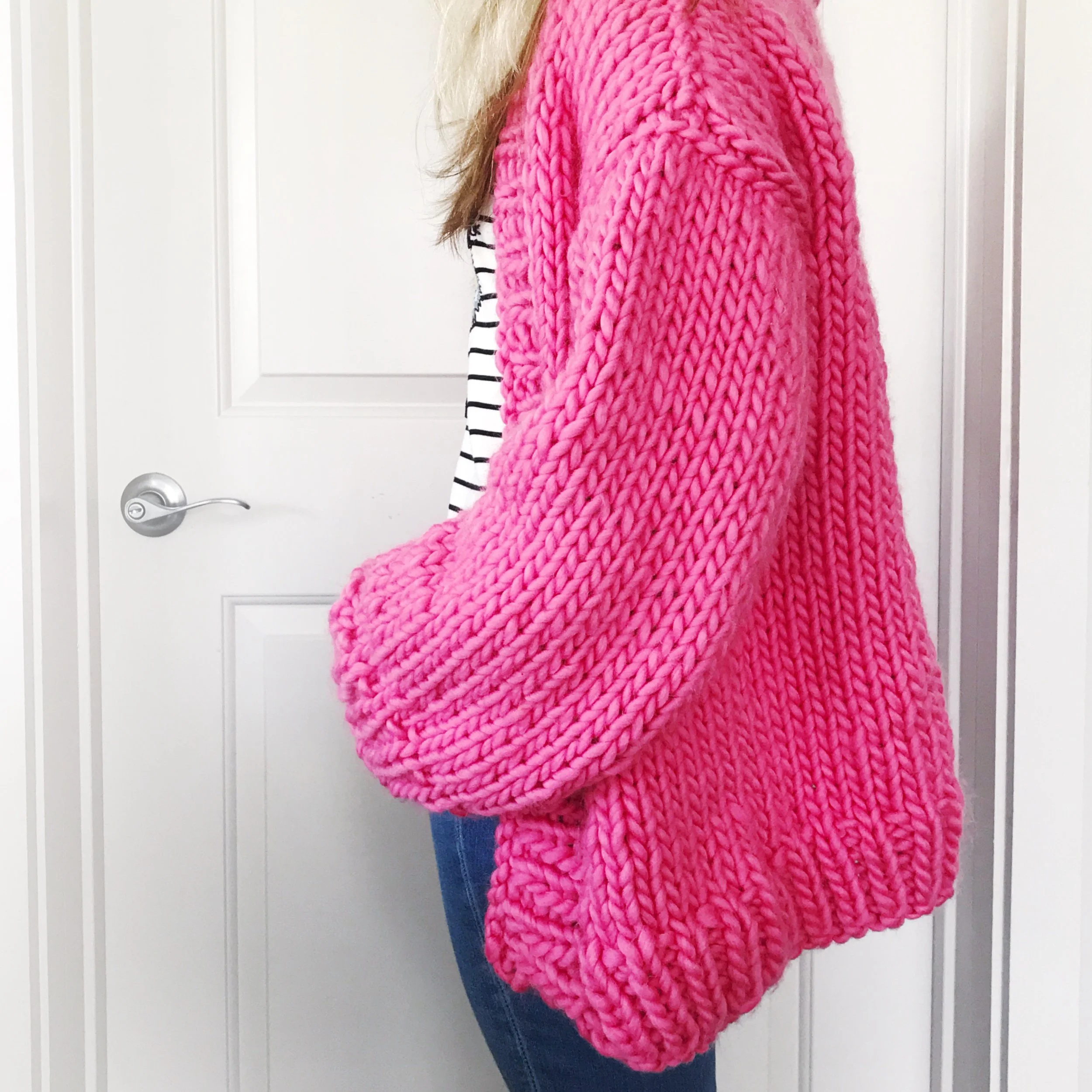 OK guys, so here is the part where everybody gasps. Yep, that is a pile of a whole lot of work and time (also it's some gorgeous pink yarn)! Fast forward 6 months, I decided I wasn't 100% happy with the fit of my Simone Cardigan, and by this time I had learned a new cast on method, new seaming technique, and realized I had enough yarn to adjust my sleeves. Sounded like a recipe for a do-over to me...you?!